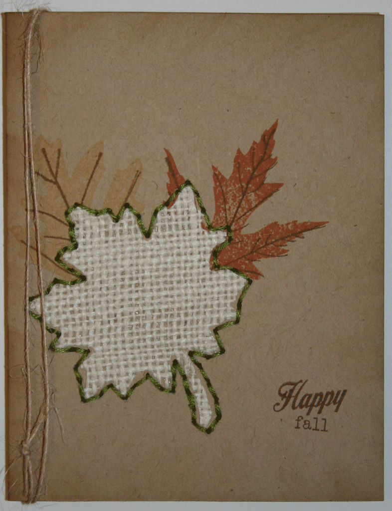 I made this card for a fun Paper Trey Ink challenge to use fabric with die cuts. This is a very simple plain card but it was fun to use my burlap and make a quick card for fall. I used heat and bond to attach the leaf to the card with my ribbon iron. It's great to have another use for it!